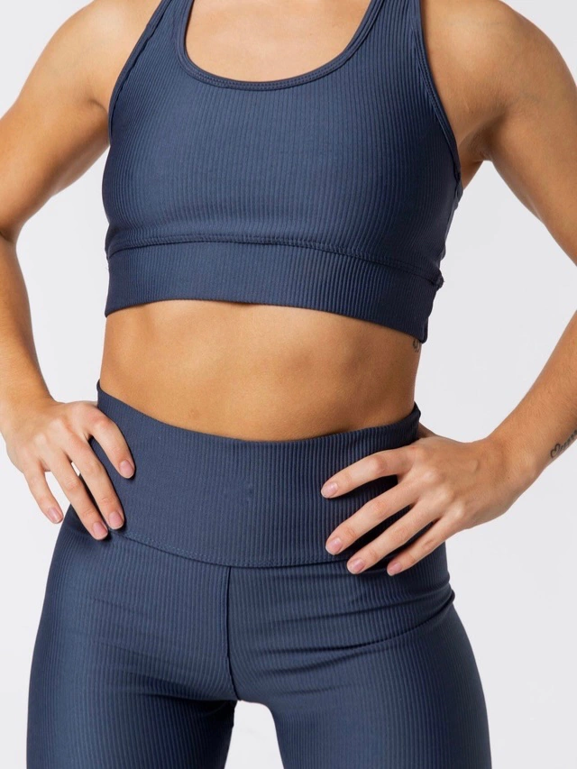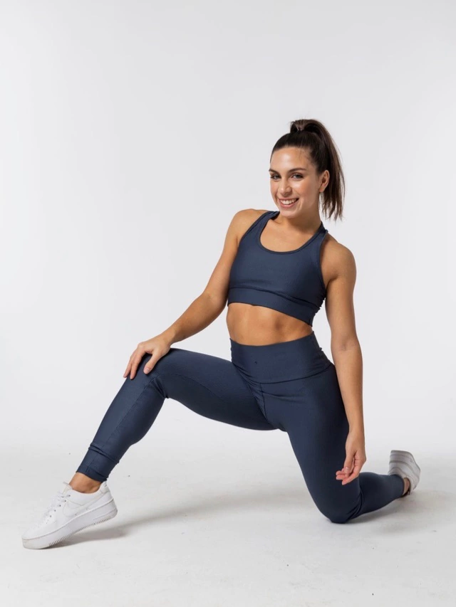 Top cuello en U, bretel ancho con calza larga cintura ancha de Morley. Tejido de punto elástico con doble rebote y textura de bastones verticales; está compuesta principalmente de fibra de spandex, lo que permite su excelente elasticidad y capacidad de recuperación. Esta caracteristica permite que la tela se ajuste perfectamente al cuerpo, ofreciendo una gran libertad de movimiento y comodidad.